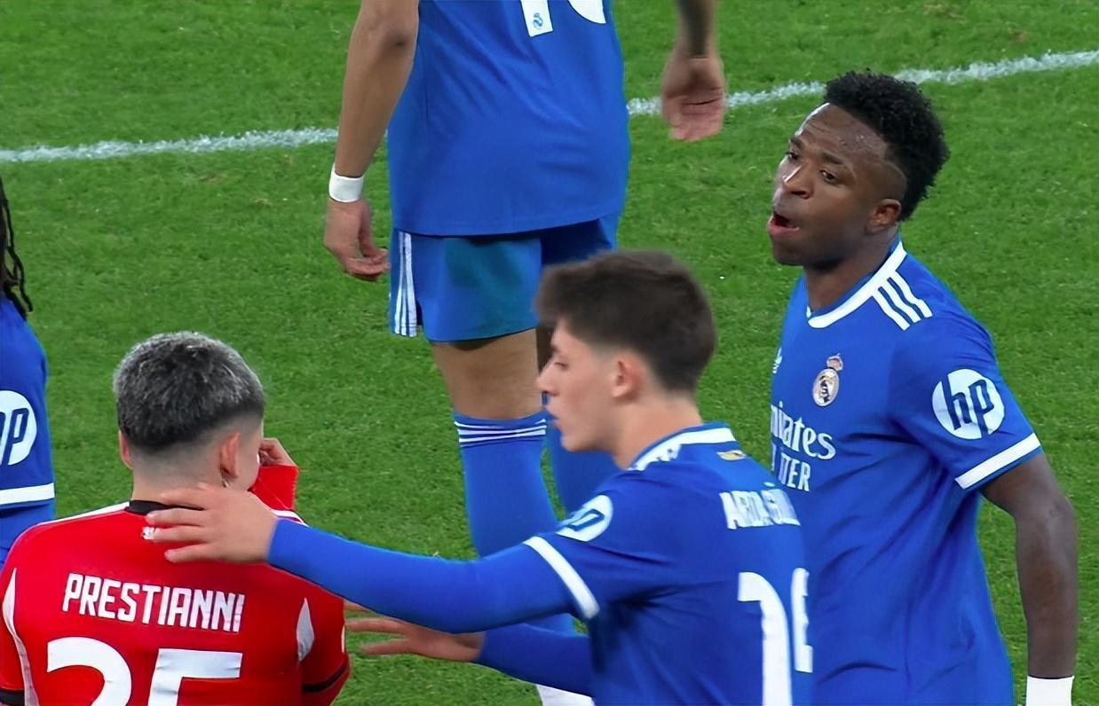 维尼修斯立刻暴走,他找到主裁判进行投诉,称普雷斯蒂亚尼骂他为猴子。随后,维尼修斯拒绝继续比赛,并走到替补席,比赛因此一度中断。