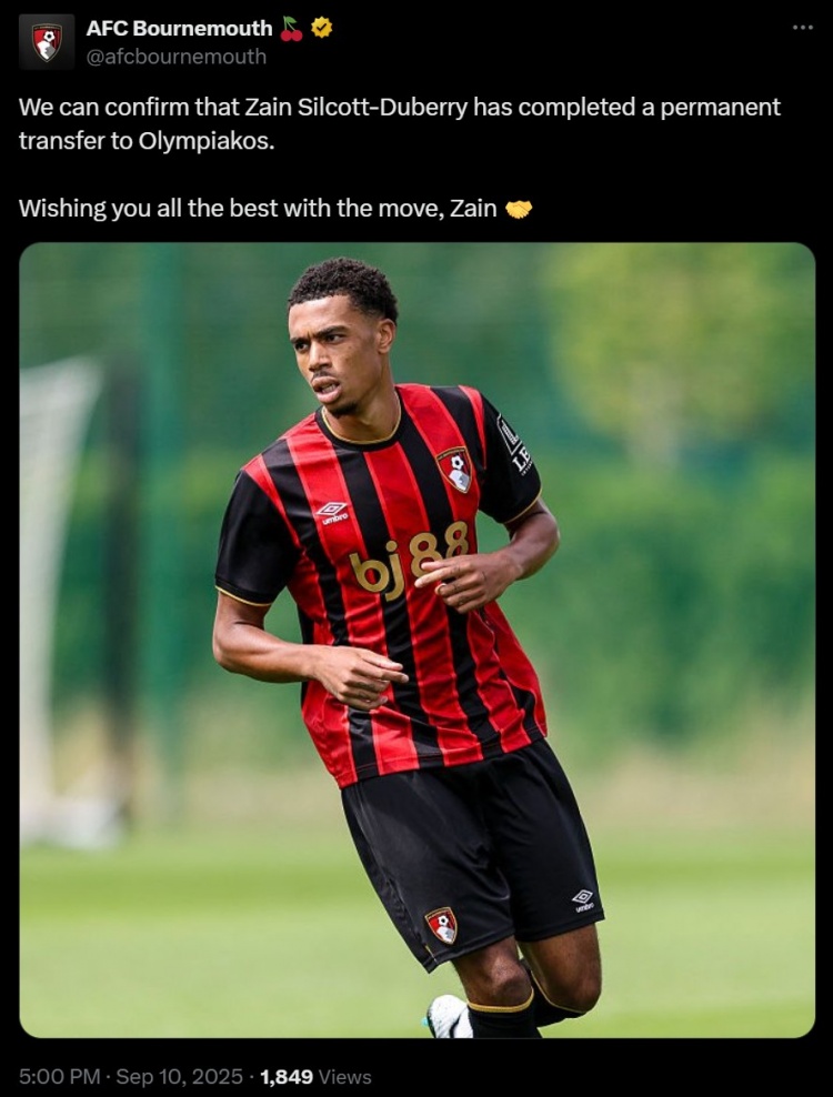 9月10日讯 伯恩茅斯官方确认,杜伯里永久转会至奥林匹亚科斯。